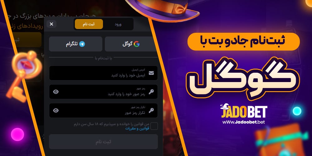 ورود از طریق گوگل : با انتخاب گزینه ورود از طریق گوگل، به راحتی می توانید از حساب گوگل خود برای دسترسی به جادو بت استفاده کنید. این روش سریع و راحت است و نیازی به وارد کردن اطلاعات اضافی ندارد.